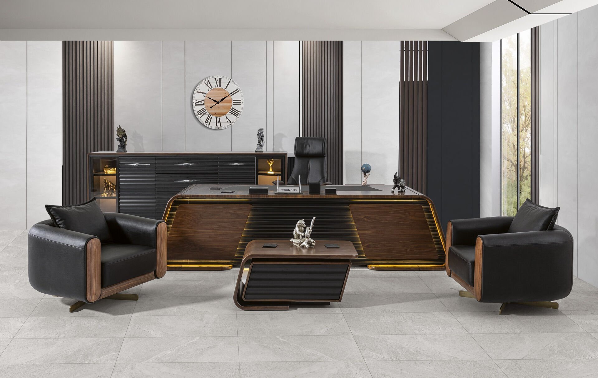 1. MASA ETAJERLİ 2. DOLAP 3. SEHPA 4. ÜÇLÜ BEKLEME 5-6. 2X TEKLİ BEKLEME 7. MÜDÜR KOLTUĞU |